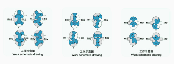 LQ系列轉子泵![]() LQ系列轉子泵 更多信息一、產品概述: 轉子泵又稱膠體泵,三葉泵,鞋底泵等。依靠兩同步反向轉動的轉子(齒數為2-4)在旋轉過程中于進口處產生吸力(真空度),從而吸入所要輸送的物料。兩轉子將轉子室分隔成幾個小空間,并按a→b→c→d的次序運轉。運轉至位置a時,只有I室中充滿介質; 到位置b時,B室中封閉了部分介質; 到位置c時,A室中也封閉了介質; 到位置d時,A、B室與Ⅱ室相通,介質即被輸送至出料口。如此循環往復,介質(物料)即被源源不斷地輸送出。