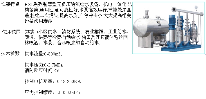 導航:回首頁---當前位置---水泵產品內容頁 >> HXL系列智慧型無負壓穩(wěn)流給水設備_HXL系列智慧型無負壓穩(wěn)流給水設備價格_報價_CAD圖紙 |