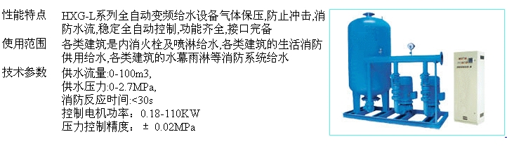 HXG-L系列全自動(dòng)變頻給水設(shè)備氣體保壓![]() HXG-L系列全自動(dòng)變頻給水設(shè)備氣體保壓 更多信息