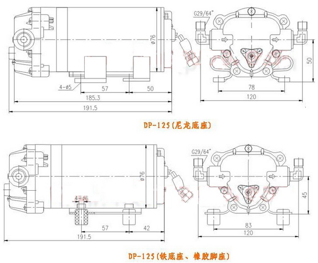 導航:回首頁---當前位置---水泵產品內容頁補充頁 >> DP微型隔膜泵安裝尺寸 |