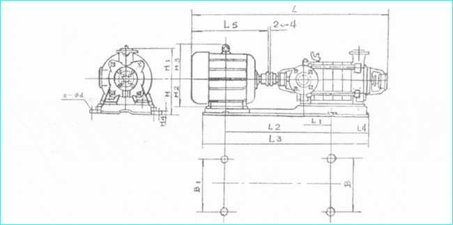 D、DG型臥式多級離心泵|外形安裝尺寸D、DG型臥式多級離心泵外形安裝尺寸圖: