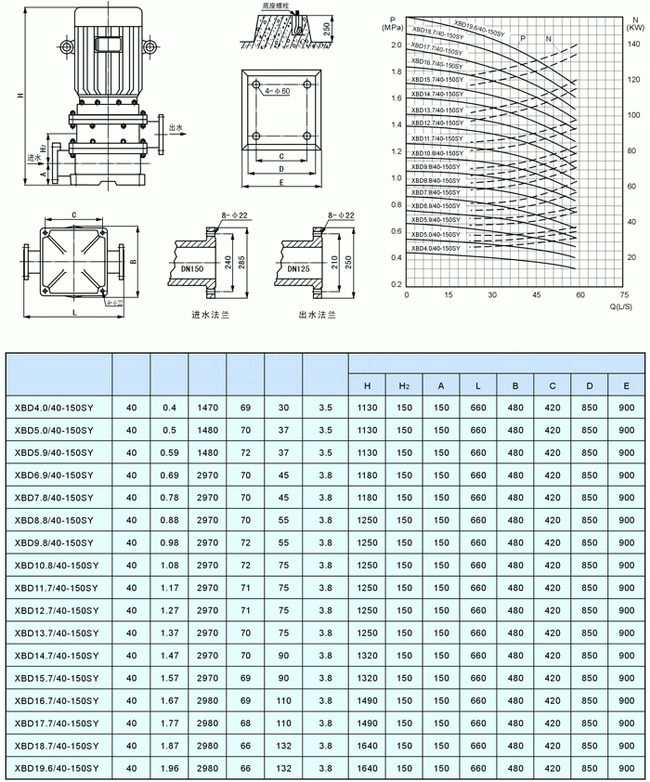 導航:回首頁---當前位置---水泵產品內容頁補充頁 >> XBD立式雙級(多級)消防泵性能參數(5) |