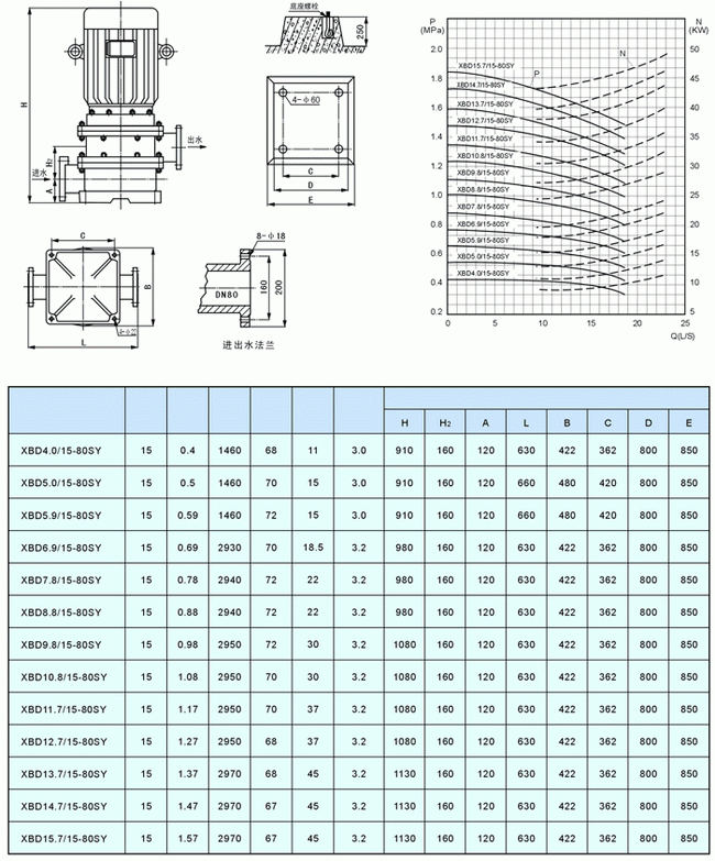導航:回首頁---當前位置---水泵產品內容頁補充頁 >> XBD立式雙級(多級)消防泵性能參數(1) |