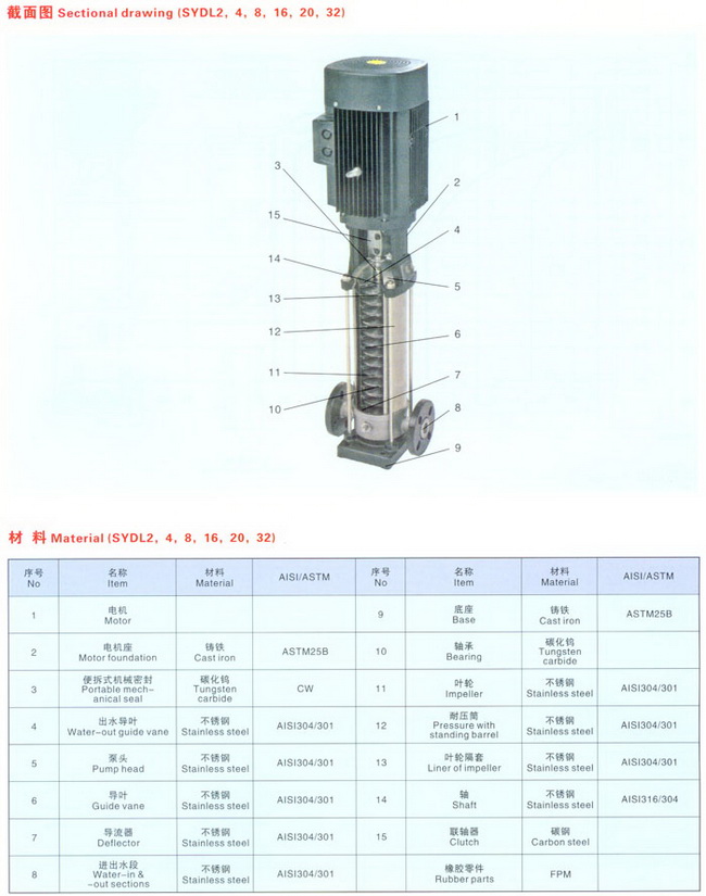 關鍵字:SYDL不銹鋼多級離心泵參數一