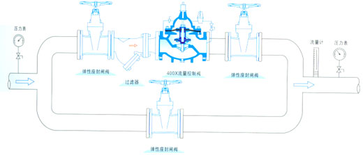 產品概述 400X減壓閥是種利用介質自身能量來調節與控制管路壓力的智能閥門,用于生活給水、消防給水及其他工業給水系統,通過調節減壓導閥,即可調節主閥的出口壓力。出口壓力不因進口的變化而變化, 地將出口壓力維持在設定值上,并可根據需要調節設定值以達到減壓目的。該閥減壓精確,性能穩定、 、安裝調節方便,使用壽命長。 典型安裝示意圖